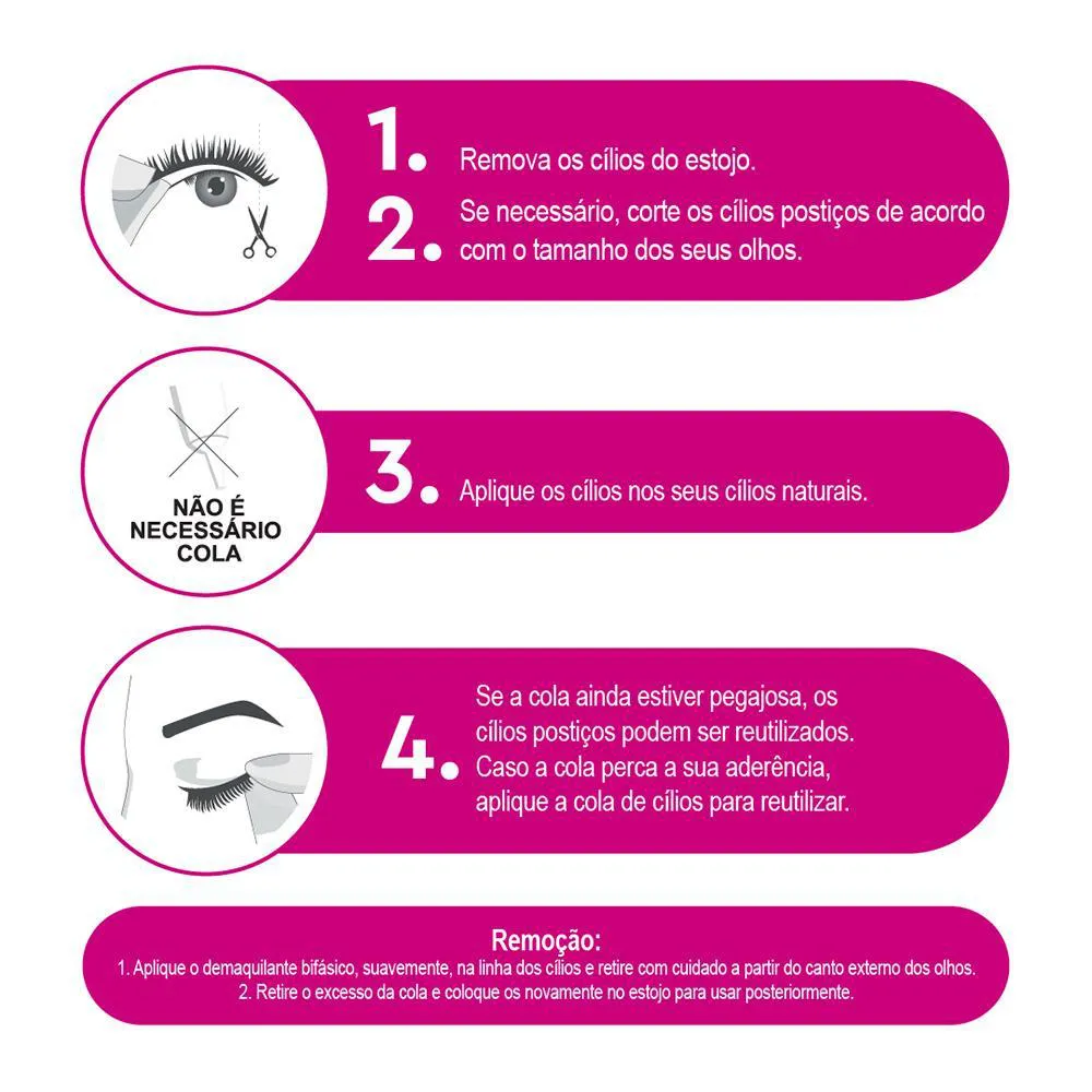 Cílios Postiços Longo Natural Absolute New York Magiquick 605 Preto natural e luxuoso um cílio autoadesivo que realçará a Beleza natural dos seus Olhos. * RESULTADO: Olhar Realçado * SUGESTÕES DE USO: 1.Se necessário, corte os cílios postiços de acordo com o tamanho dos seus olhos. 2.Aplique uma camada fina de cola ao longo dos cílios postiços. 3.Posicione os cílios postiços na linha dos seus cílios naturais e pressione suavemente para fixar. * OBSERVAÇÕES: Imagem Meramente Ilustrativa * ITENS INCLUSOS: 1 Par Absolute New York Magiquick 605 Cílios Postiços Longo Natural Preto