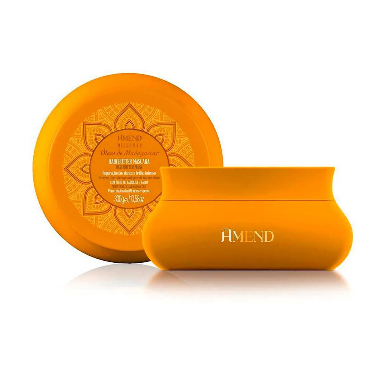 Indicada para cabelos Danificados e opacos, a Amend Millenar Óleos de Madagascar é uma manteiga capilar com alto poder de hidratação e reparação dos danos da superfície dos fios.