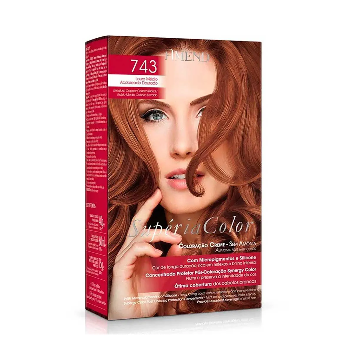 Tonalizante Creme Amend Supéria Color Sem Amônia 743 Louro Médio Acobreado Dourado com 1 Unidade