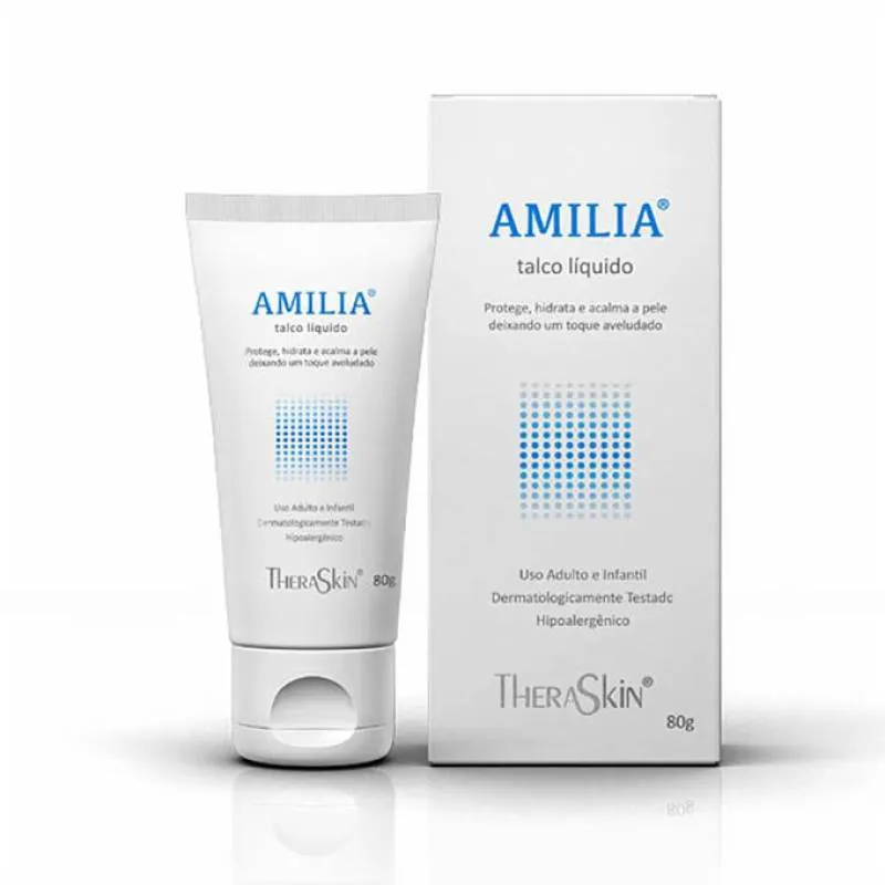 Com toque aveludado e excelente espalhabilidade, não deixa a pele branca como os talcos tradicionais e não tem perfume.O produto foi formulado para aliviar a sensação de coceira, vermelhidão, demais desconfortos e irritações de pele. E pode ser utilizado tanto por bebês e crianças, quanto por adultos.Hipoalergênico, o Amilia® Talco Líquido multirreparador foi desenvolvido especialmente para peles sensíveis e delicadas, e ajuda a aliviar o incômodo causado por brotoejas, varicela (catapora), assaduras por atrito, picadas de insetos e incômodos pós-depilatório, pós-sol e pós-barba, trazendo maior frescor e alívio para a região.