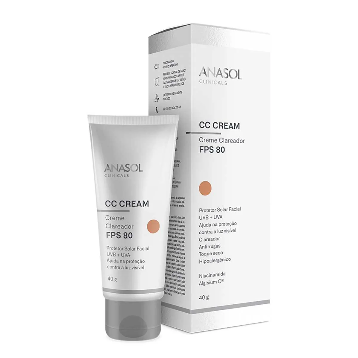 Protetor Soar Facial Anasol Clinicals CC Cream FPS80 com 40g
