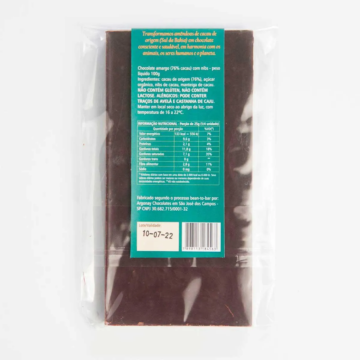 Chocolate Argonay 76% Cacau com Nibs com 100g