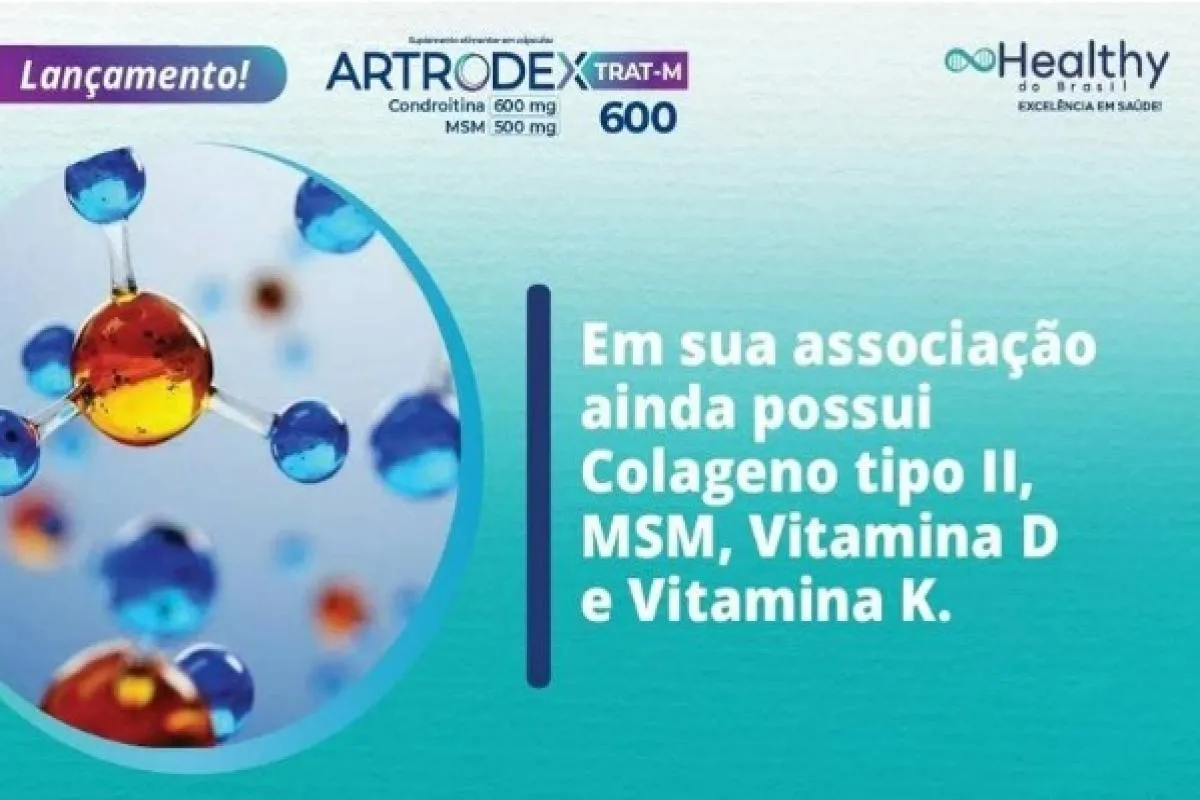 Artrodex Trat-M é a associação de Condroitina, MSM, Colágeno tipo II não desnaturado e vitaminas D e K.