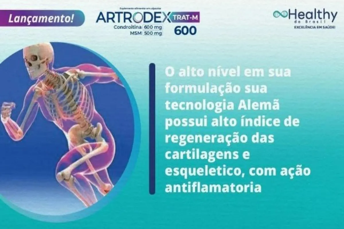 Indicado para as articulações, Atrodex Trat-M 600 funciona para a reposição da cartilagem, sendo indicado para artrite, artrose e outros problemas articulares, ajudando a aliviar as dores.