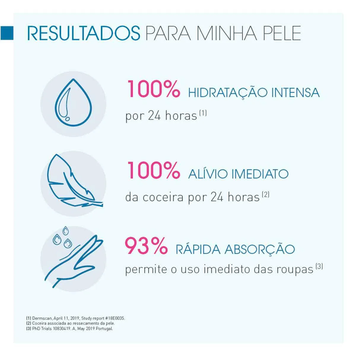 Com textura leve, não colante e de rápida absorção, seu uso mantém a pele hidratada e protegida por 24 horas, além de acalmar a coceira de forma imediata.