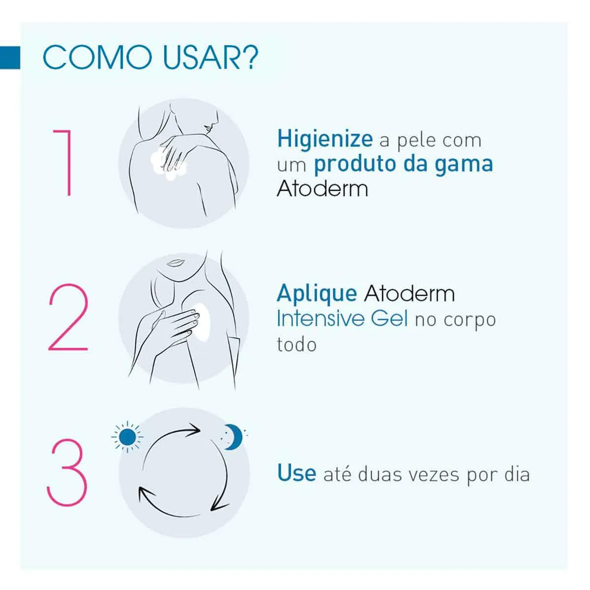 Após a limpeza da pele com o produto de sua preferência, aplique o Atoderm Intensive sobre a pele e massageie delicadamente até a completa absorção do produto.