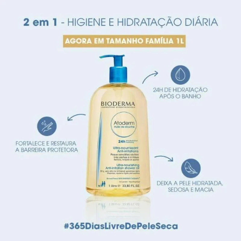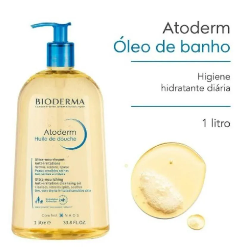 Óleo corporal de banho para peles secas ou ressecadas. Óleo de Banho Hidratante Bioderma Atoderm nutre, acalma a irritação e hidrata por 24 horas, além de proteger efetivamente contra a ação danosa de agressões externas.