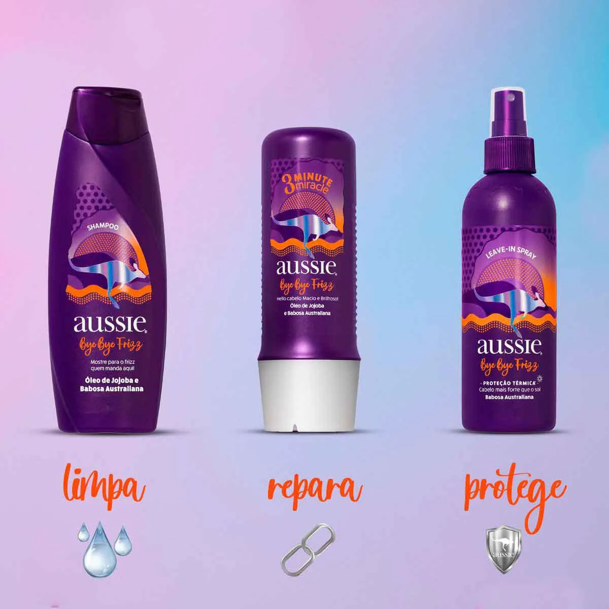 Kit Aussie Bye Bye Frizz Shampoo 180ml + Creme de Tratamento 3 Minute Miracle 236ml