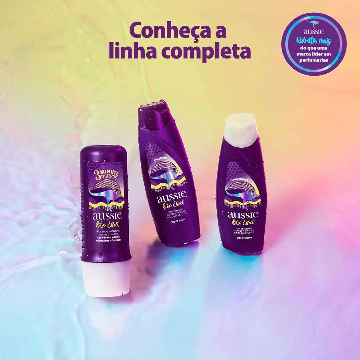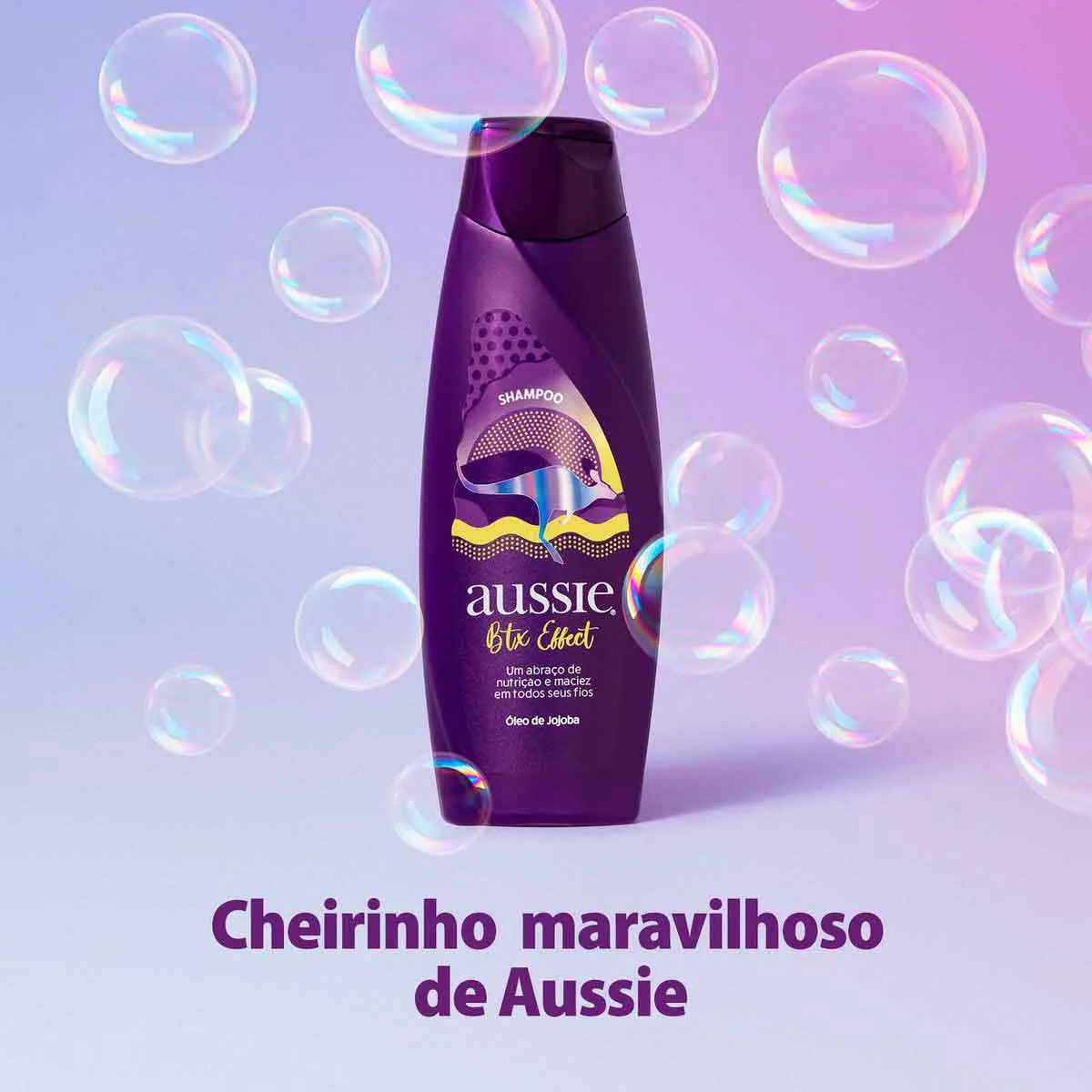 Indicado para botox capilar e alinhamento do fio, o shampoo Aussie Botox Effect garante efeito progressiva caseira, sem alisamento químico. Ele nutre e fortalece os fios, mantendo-os alinhados e disciplinados, dando brilho, protegendo as pontas duplas e controlando a umidade.