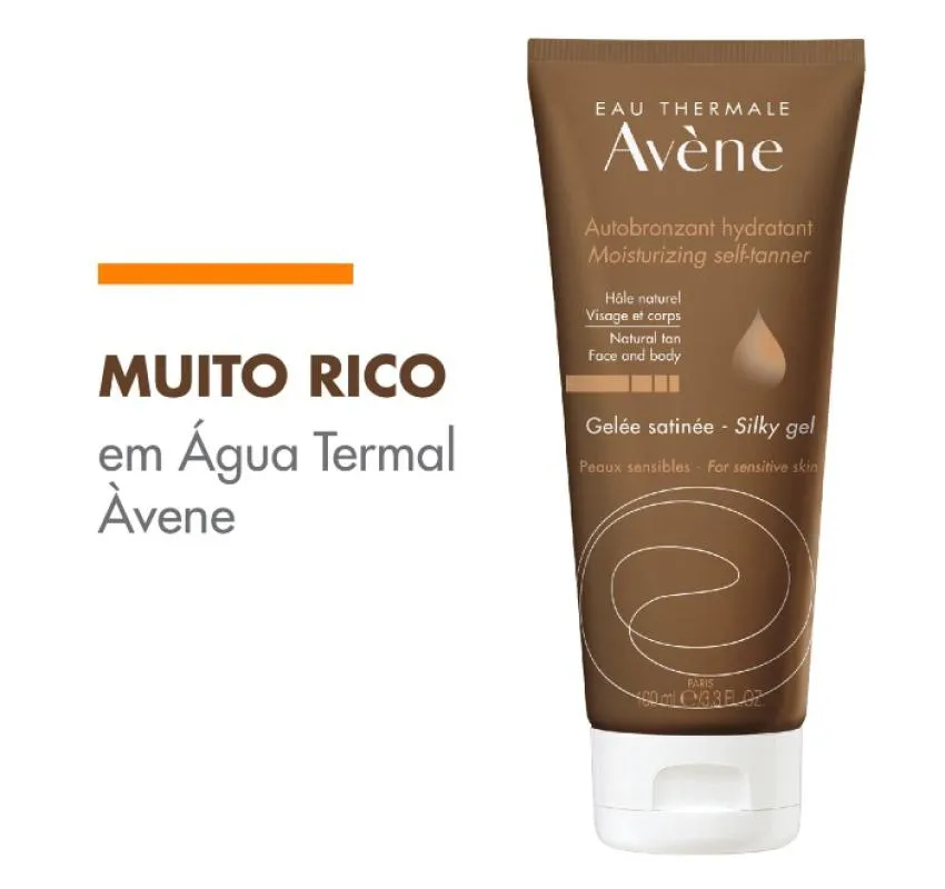 Gel autobronzeador hidratante. Avène Autobrozant Hydratant cria um bronzeado uniforme e sem manchas, para pele macia e luminosa.