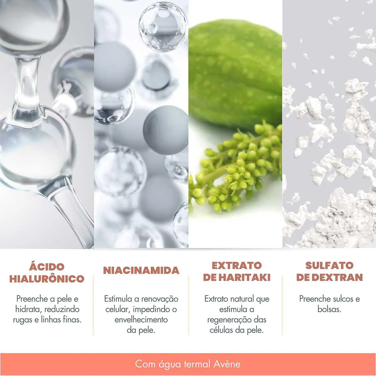 - Contém ácido hialurônico e niacinamida.