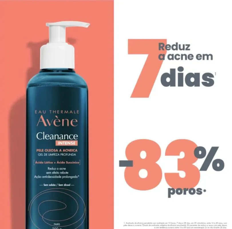 O Gel de Limpeza Profunda Avène Cleanance Intense possui uma combinação exclusiva de ativos inovadores, Ácido Lático e Ácido Succínico, que ajudam a combater a acne, evitam o efeito rebote e garantem ação antioleosidade prolongada.