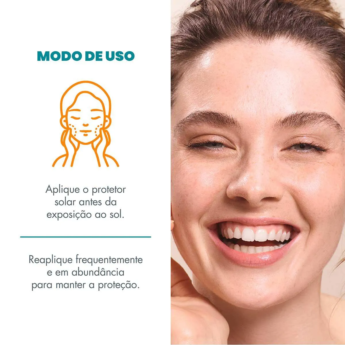 Aplique o produto uniformemente sobre a pele antes da exposição solar e sempre que necessário. Reaplicar sempre, após sudorese intensa, nadar ou banhar-se, secar-se com toalha e durante a exposição ao sol. É necessária a reaplicação do produto para manter a sua efetividade. Ajuda a prevenir queimaduras solares.