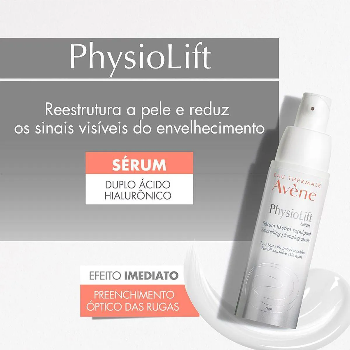 Avène Physiolift é um sérum facial que tem como objetivo regenerar a pele e preencher rugas e sulcos profundos, promovendo um lifting na pele, tornando-a mais firme e iluminada. Além disso, sua fórmula conta com duplo Ácido Hialurônico, que hidrata e preenche imediatamente as rugas enquanto age na estrutura da pele de fora para dentro, reparando os danos causados pelo envelhecimento.