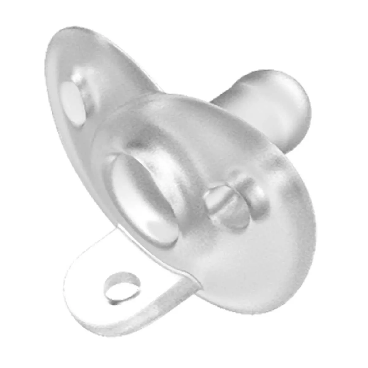 Formato do bico que estimula e supri a sucção do bebê, tem uma abertura no escudo que a permite a mãe coloque o dedinho mindinho para massagear a boca do bebê. Indicado para recém nascidos.