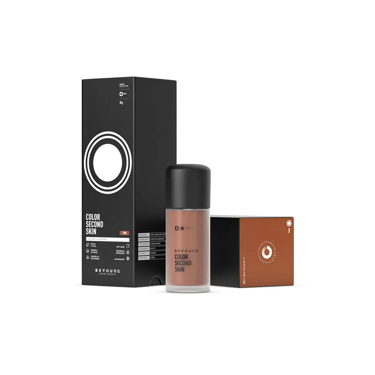 Beyoung Color Second Skin é a base facial ideal para fazer parte da sua rotina de pele. É uma base multifuncional, que atua como maquiagem e tratamento, cuidando da sua pele enquanto uniformiza o tom e disfarça as imperfeições. Com duração de até 10 horas, ela possui média cobertura, que se adapta ao seu tom de pele e garante uma aparência natural.