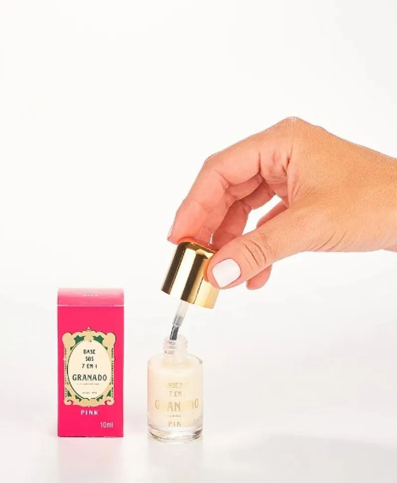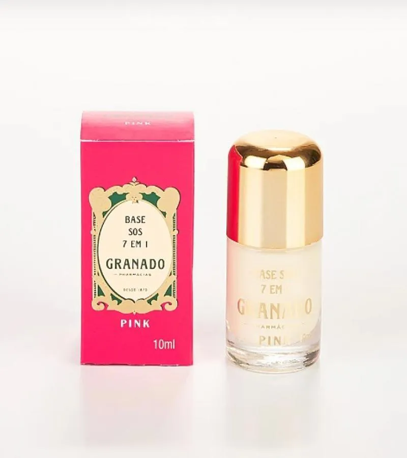 Base fortalecedora. Granado Pink Base SOS 7x1 é enriquecida com ativos ideais para unhas fracas ou quebradiças, traz 7 benefícios.
