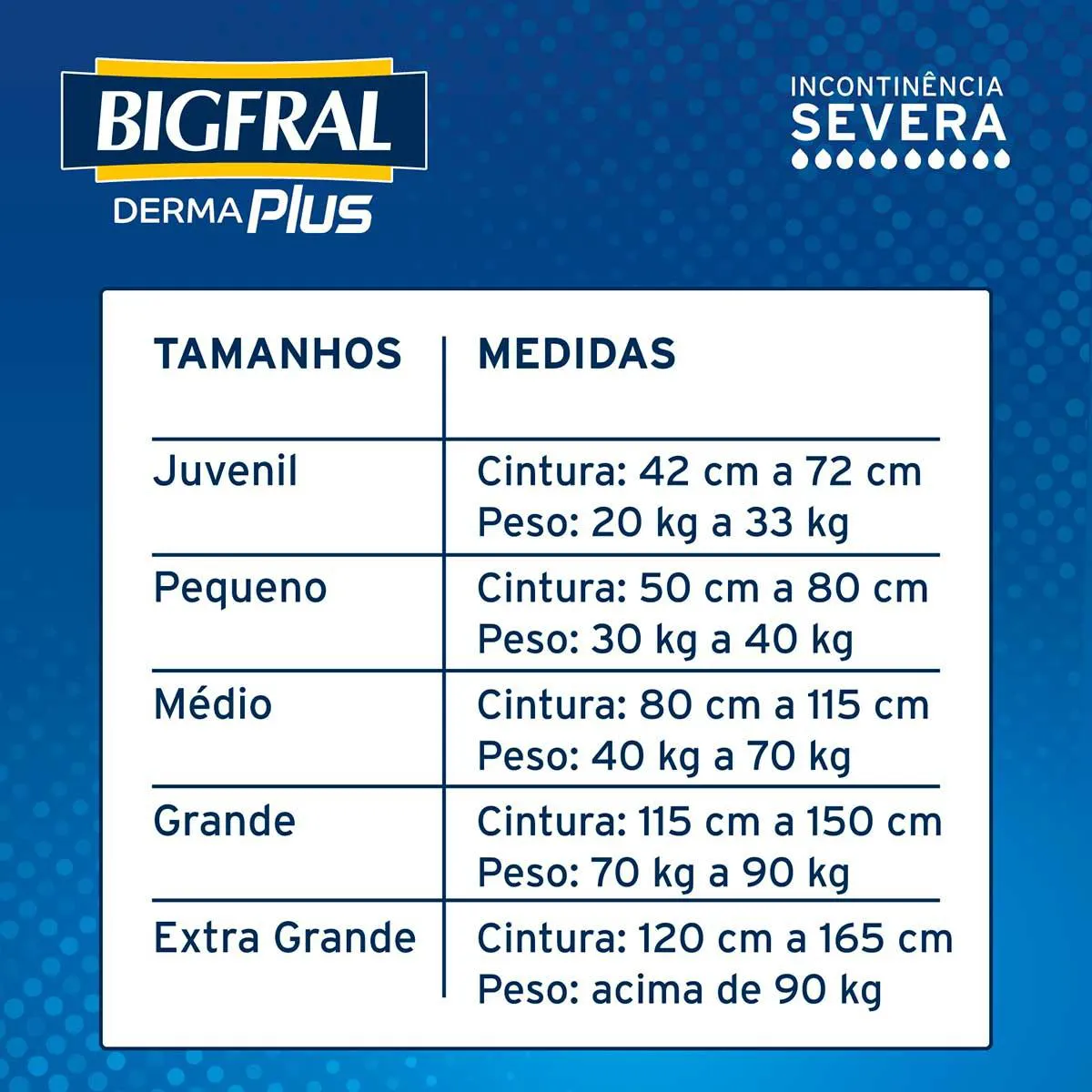 Fácil de usar, a Fralda Bigfral Noturna conta ainda com um indicador de umidade que ajuda a saber o exato momento da troca. Ela possui tecnologia antiodor e contribui para maior segurança e conforto de idosos e pessoas acamadas, com descontrole da bexiga.