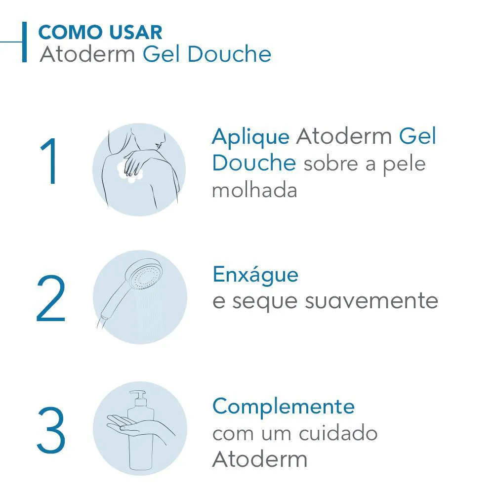 Atoderm Gel Douche limpa: gel de banho para limpeza diária antiressecamento de peles normais, secas e muito secas, para Rosto e Corpo. Atoderm Del Douche limpa respeitando totalmente o equilíbrio da pele. Seus tensoativos (agentes limpantes), derivados do coco e da glicerina, repõem os lipídios naturais da pele desde o banho. Graças à ação hidratante da Glicerina, Atoderm Gel Douche suaviza e protege a pele. Atoderm Gel Douche mantém a pele livre de micro-organismos graças à ação do sulfato de cobre. As propriedades calmantes de Atoderm Gel Douche reduzem as sensações de desconforto causadas pelo ressecamento. * RESULTADO: Suaviza e protege * SUGESTÕES DE USO: 1.Aplicar na pele molhada; 2.Massageie até formar espuma; 3.Enxague em abundância; 4.Secar de forma delicada. * OBSERVAÇÕES: Imagem Meramente Ilustrativa * ITENS INCLUSOS: 1 Bioderma Atoderm Gel de Banho Corporal Hidratante 1l