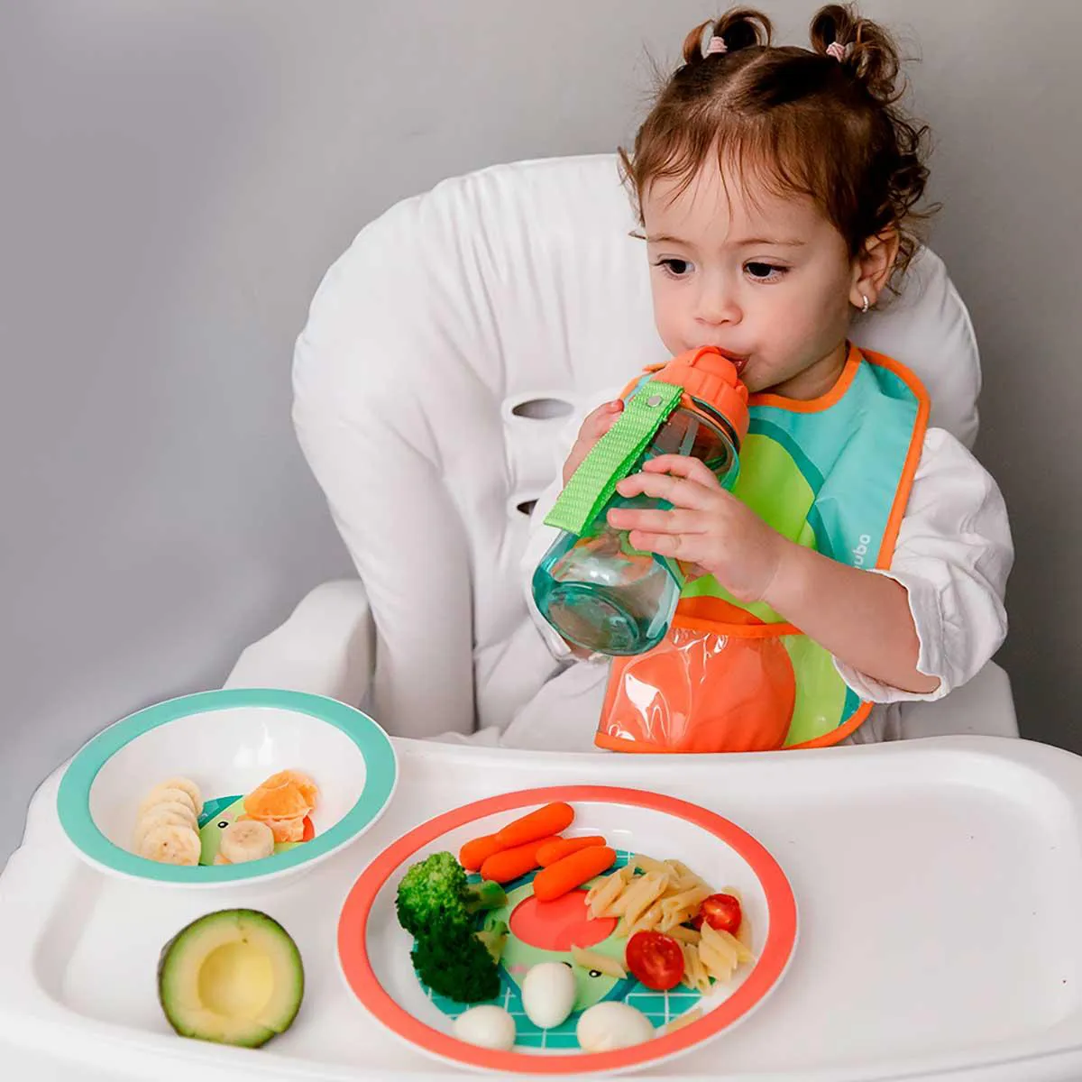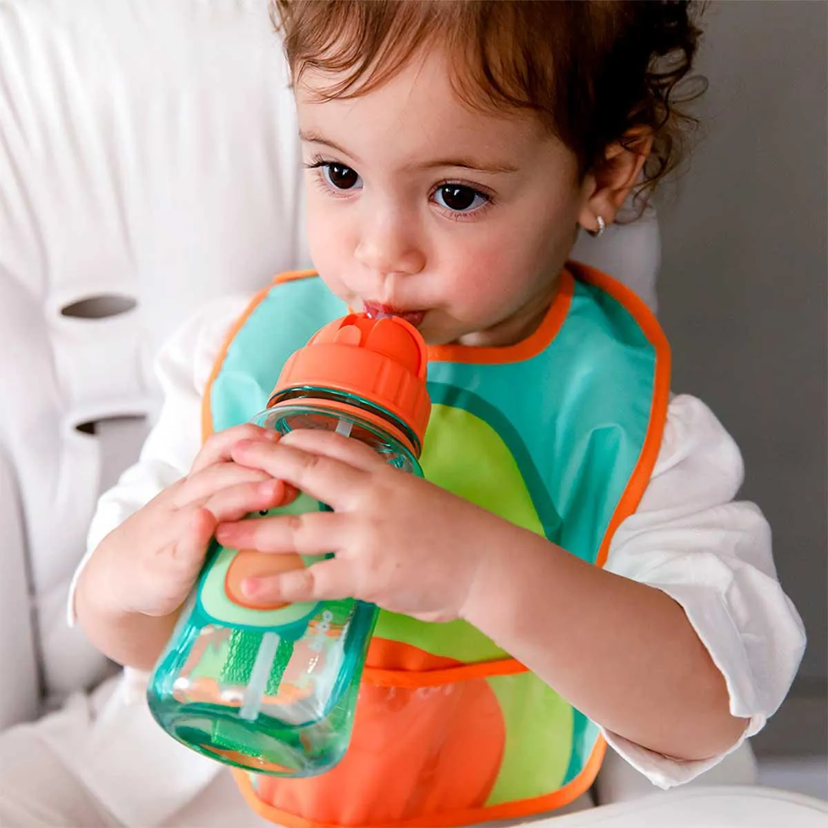 A garrafinha foi desenvolvida para o período de transição da mamadeira para o copo. Perfeita para passeios e viagens.