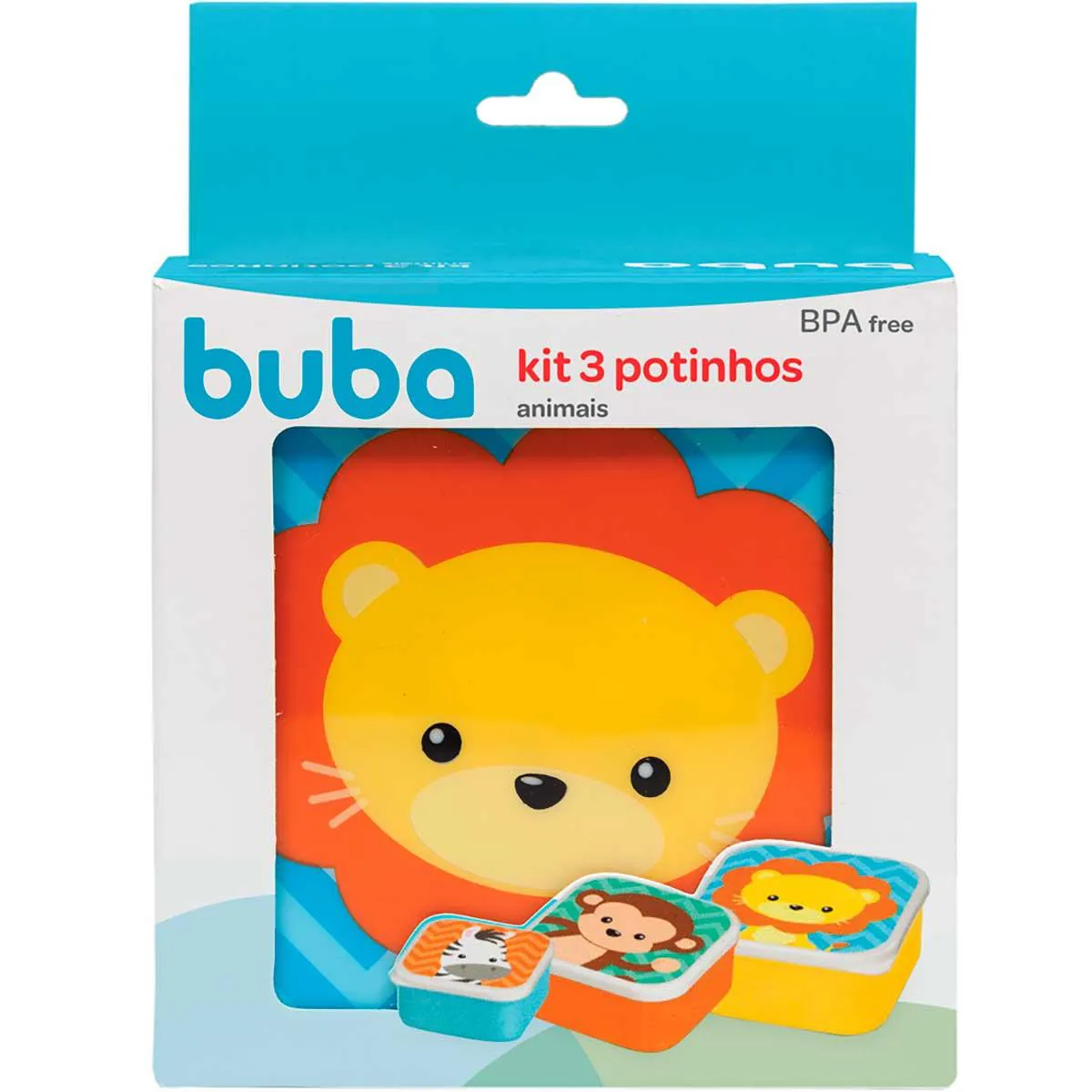 O Kit 3 Potinhos animais da Buba é ideal para armazenar as papinhas, frutinhas e alimentos do bebê, para proteger, congelar ou aquecer sem perder o frescor.