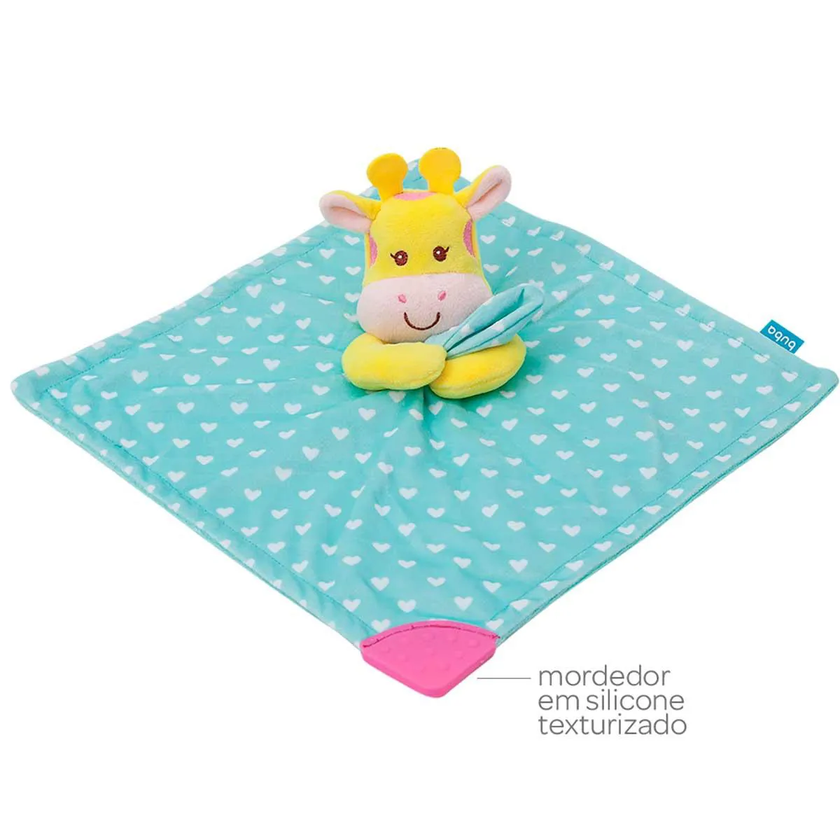 Macia e com uma Girafinha super fofa, transmite segurança e aconchego ao pequeno. Possui mordedor na ponta, ideal para aliviar o desconforto causado pelo nascimento dos primeiros dentinhos.