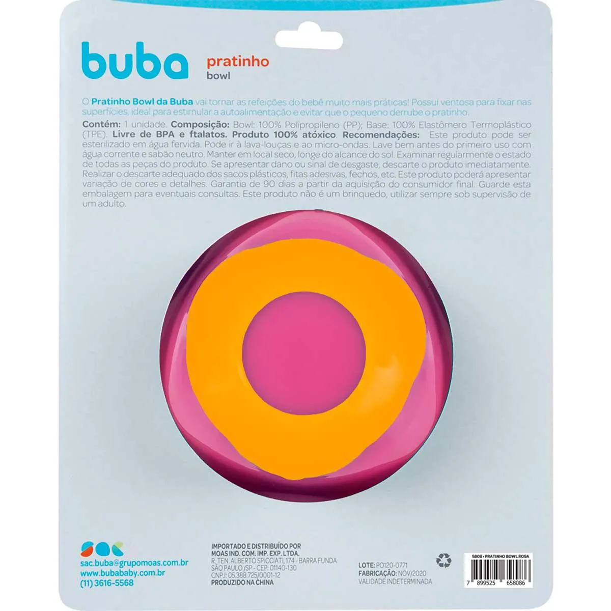 Prato Bowl Buba Baby Rosa Base com Ventosa com 1 unidade
