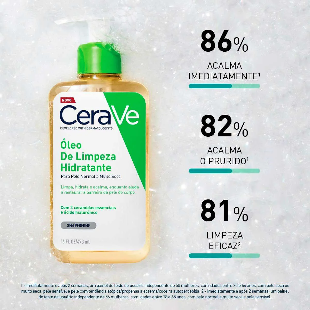- Aplique o óleo de limpeza Cerave de manhã e à noite na pele molhada, com uma massagem suave até emulsionar.
