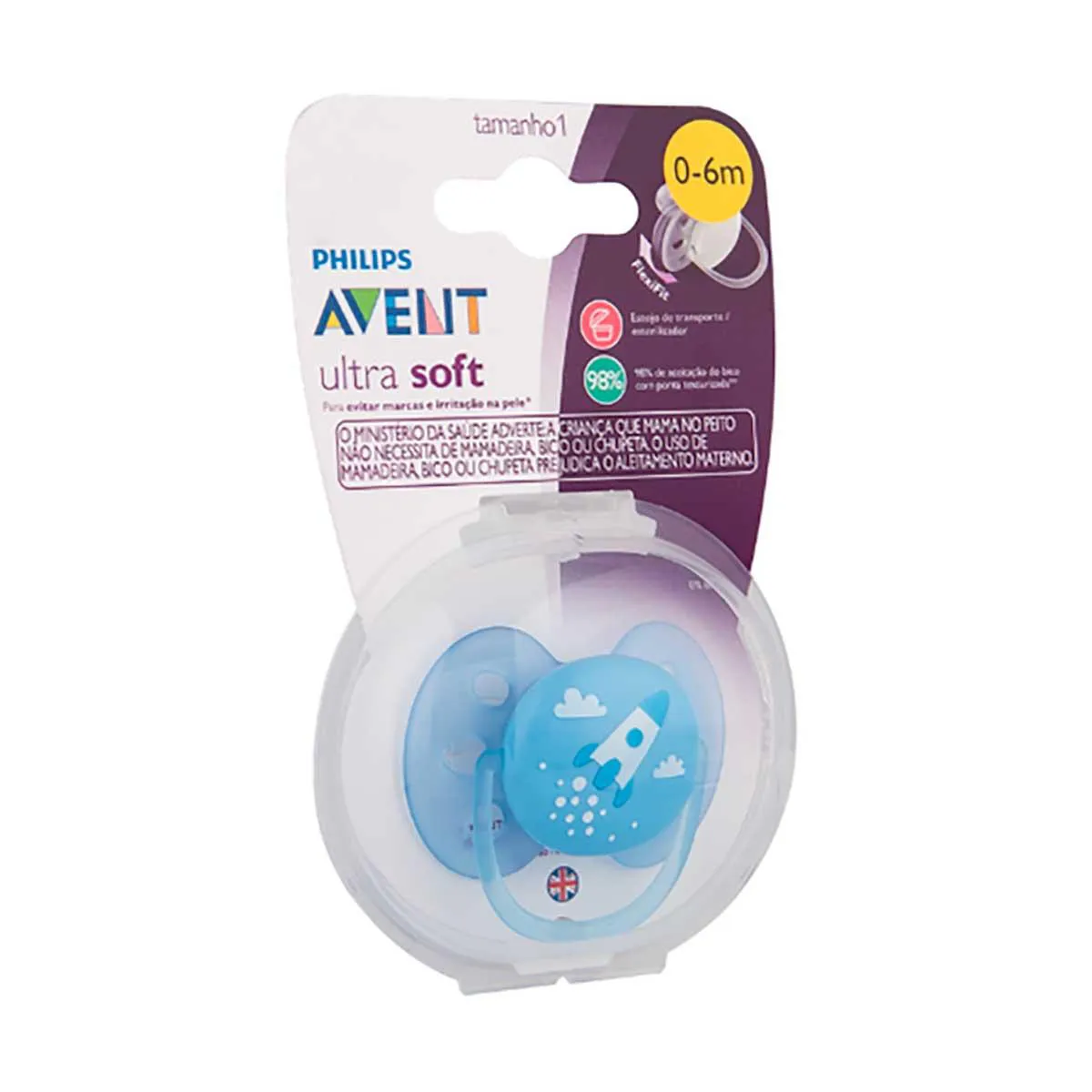 Chupeta Philips Avent Ultra Soft 0 a 6 Meses Azul Decorada com 1 unidade
