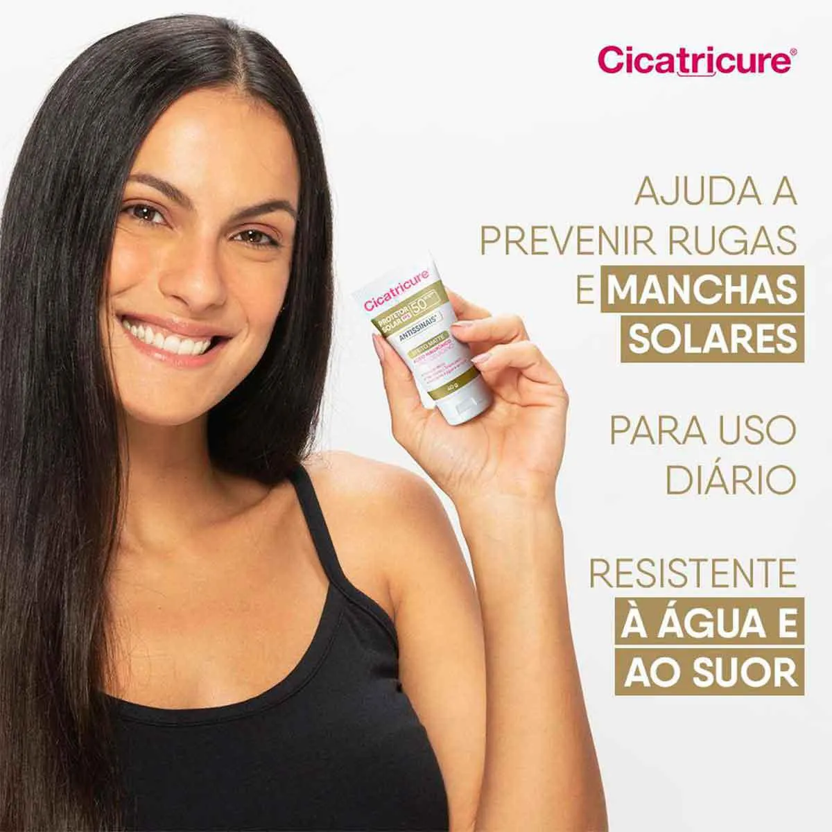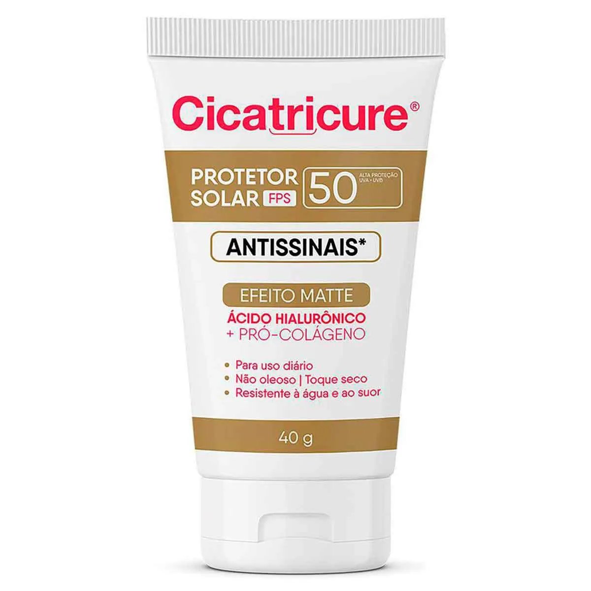 Novo Cicatricure Protetor Solar Antissinais FPS 50 de uso diário, com Ácido Hialurônico e Pro Colágeno, que previne sua pele dos danos solares e dos danos causados pela poluição, luz azul, alterações climáticas e outros fatores externos.