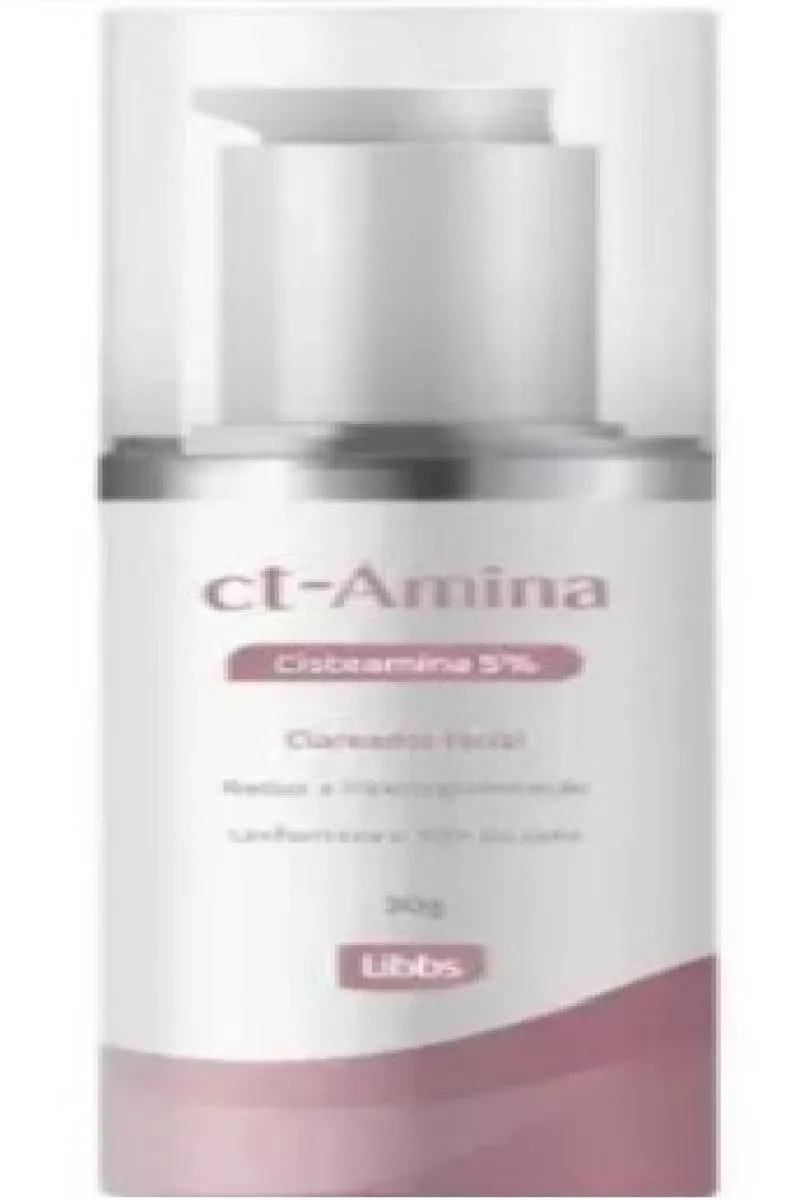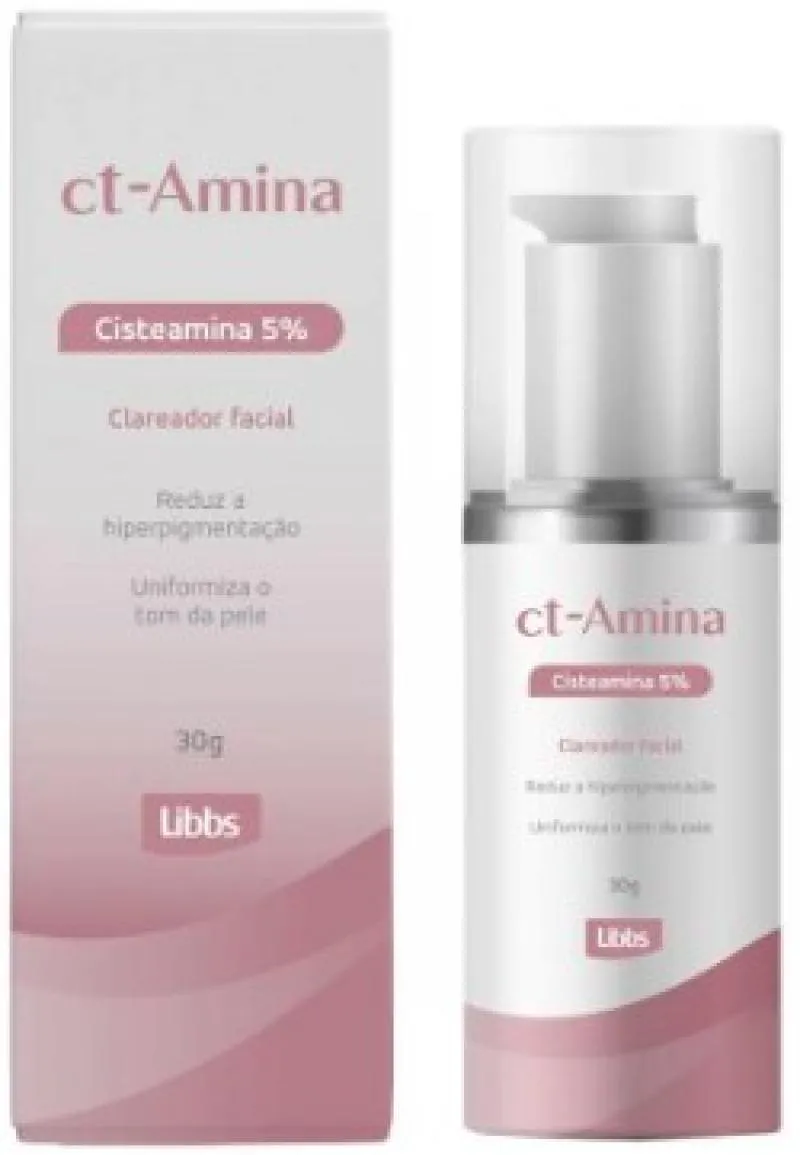 Ct-Amina creme é um despigmentante facial para uniformização do tom da pele. Sua fórmula com Cisteamina é inovadora e efetiva para tratamento do melasma. ct-Amina é ciência a favor da pele.