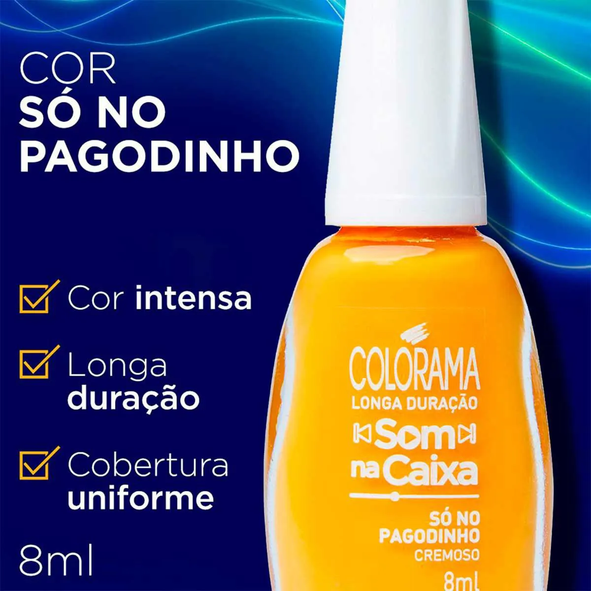 O Só no Pagodinho é um esmalte Colorama da linha Som na Caixa, uma coleção exclusiva que conta com 9 cores incríveis, que transmitem muita alegria e humor, representando uma das épocas mais contagiantes para os brasileiros, a Copa do Mundo.