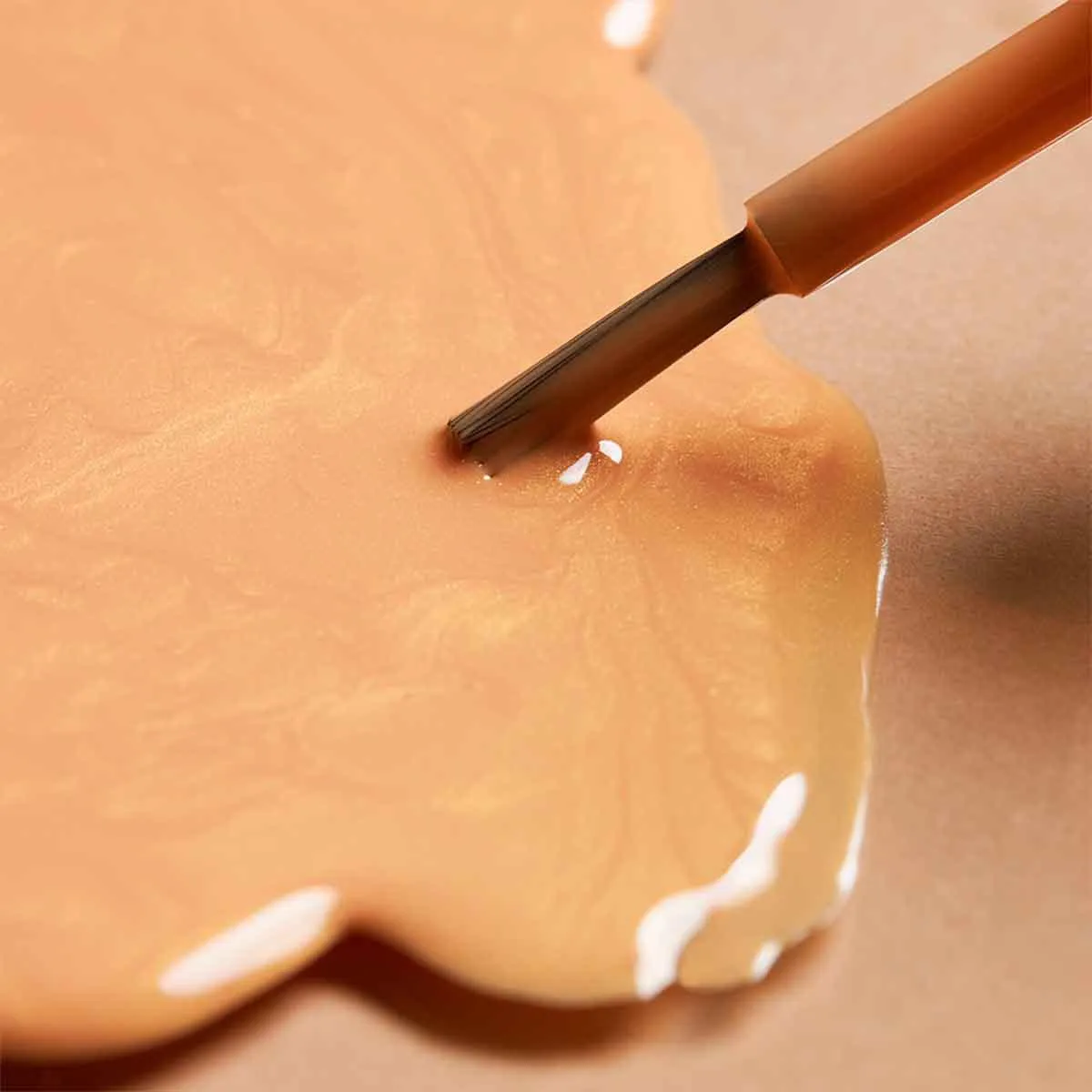 1. Utilizando o pincel do vidrinho, passe uma camada sobre toda unha, começando pelas laterais e preenchendo o meio.