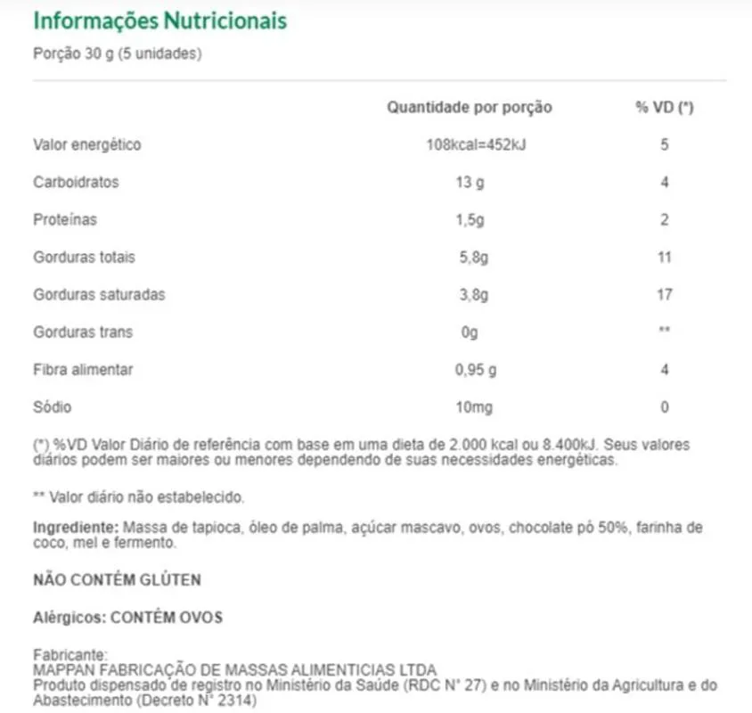 Contém ovos.
