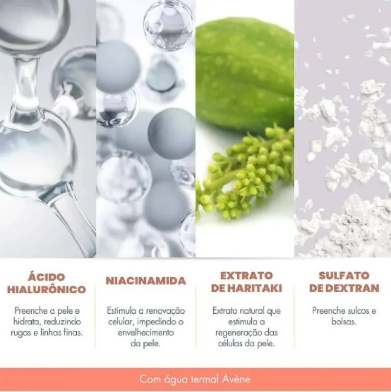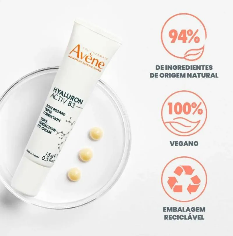Avène traz uma inovação em anti-idade com o Hyaluron Activ B3 Olhos, contendo sulfato de Dextran, ácido hialurônico puro, extrato de Haritaki e niacinamida (6%).
