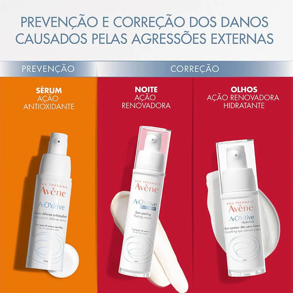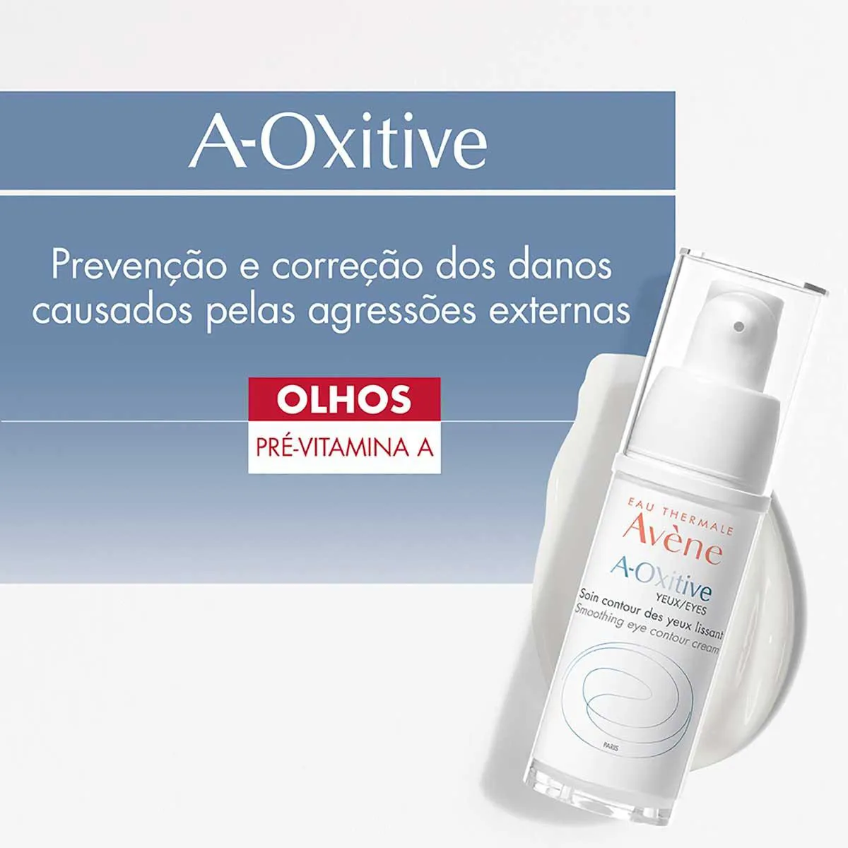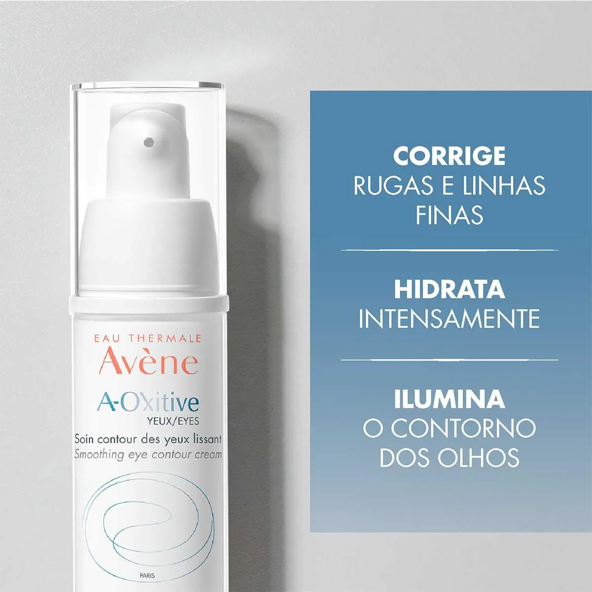 A-Oxitive da Avène é um creme específico para região dos Olhos, indicado para corrigir rugas e linhas finas de expressão, além de recuperar a luminosidade e hidratação natural da pele. Proporciona um aspecto revigorado e descansado para o olhar.