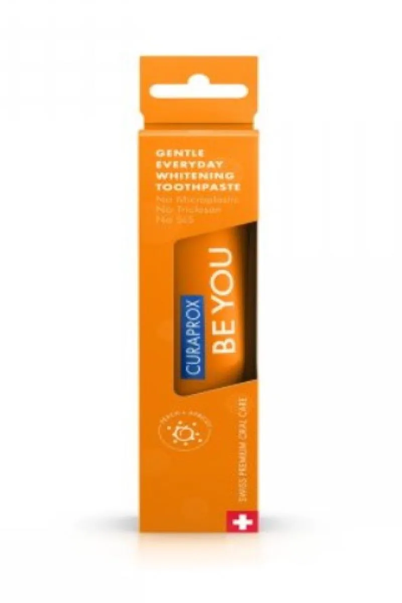 Benefícios e diferenciais da Pasta de Dente Curaprox Be You Pure Happiness Agradável sabor de Pêssego e Damasco. Ação cicatrizante. Atua na manutenção do clareamento profissional. Contribui com a melhoria da saúde oral e para tornar a escovação prazerosa. Desenvolvida por profissionais especialistas em sabores, aromas e fragrâncias da Givaudan. Sensação suave o dia todo. Hálito fresco de longa duração. Livre do Lauril Sulfato de Sódio. Produto vegano (não possui componentes de origem animal).