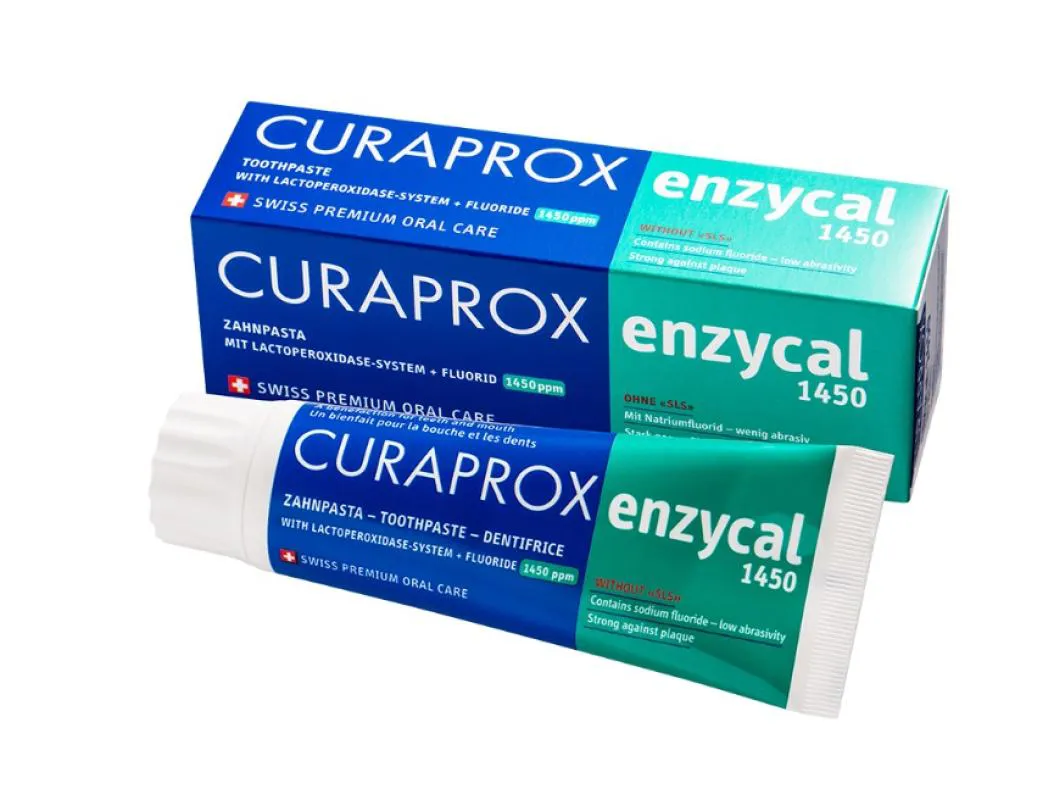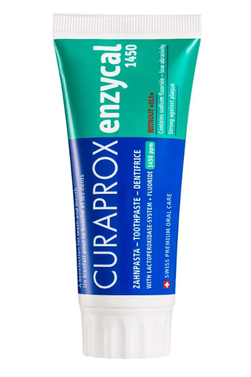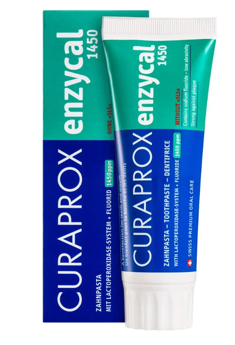 Enzycal 1450 Curaprox Creme Dental Suíço - Curaprox Enzycal 1450 é um creme dental suave e anticariogênico que auxilia a defesa natural da saliva - As enzimas, juntamente com os fluoretos ativos, ajudam a proteger a superfície dos dentes contra a cárie.