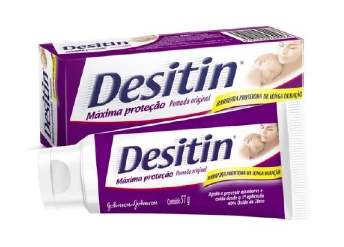 Desitin Original Máxima Duração, ou Desitin Roxo, é uma pomada que forma uma camada protetora de longa duração na pele do bebê, ajudando a prevenir irritações e assaduras. Sua fórmula contém 40% de Óxido de Zinco, ingrediente que ajuda a prevenir irritações e assaduras na área da fralda. Produto Hipoalergênico*.