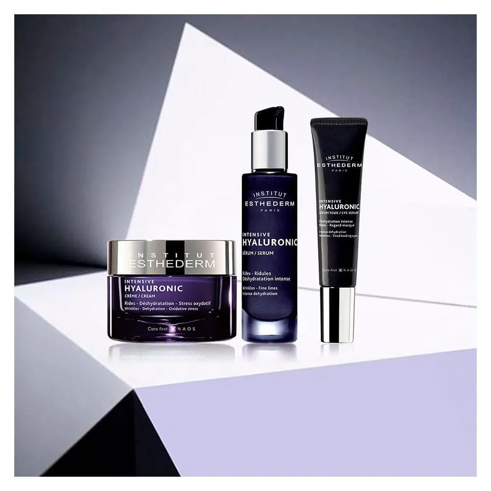 Intensive Hyaluronic Cream Hidrata e preenche superficialmente: associação de duas formas de ácido hialurônico – alto peso molecular e encapsulado – mantém altos níveis de água na epiderme e suaviza as linhas finas provocadas pelo ressecamento. Corrige e atenua rugas: o ácido hialurônico de médio peso molecular estimula a síntese de ácido hialurônico para um efeito de preenchimento duradouro.