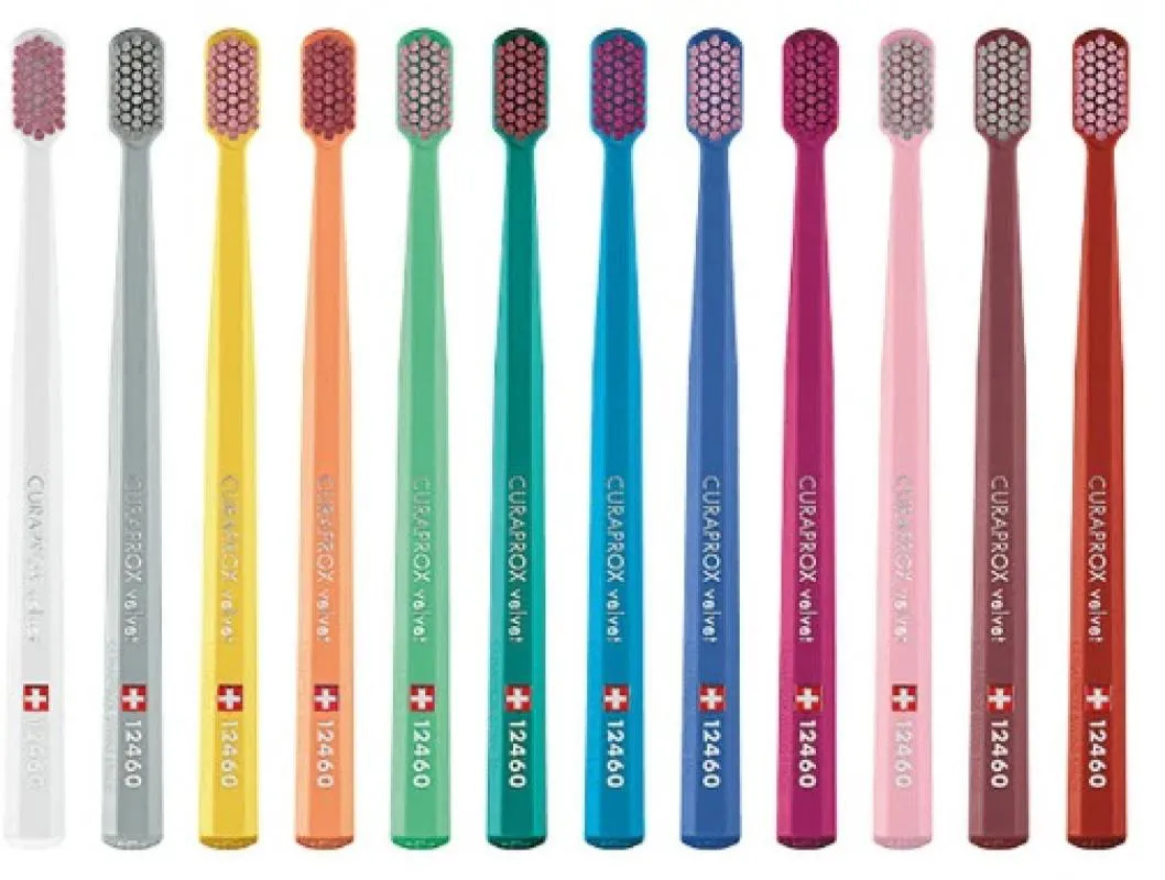 A Curaprox Velvet possui 12.460 cerdas de Curen ultrasoft, fazendo dela a escova com maior número de cerdas do mundo. Desenvolvida e fabricada na Suíça, a Velvet proporciona maior eficácia na higiene dental e uma sensação de suavidade jamais sentida nos dentes e gengivas. Desenvolvida para uma higiene oral efetiva e atraumática, com 12.460 cerdas ultramacias possui ação seletiva sobre a placa bacteriana não provocando retração gengival em longo prazo. Cabo material plástico, cerdas com fibras de Poliéster Curen com 0,08mm de diâmetro com pontas arredondadas e polidas.