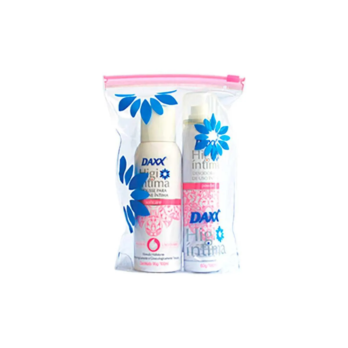 O Mousse para Higiene Íntima Daxx Softcare possui em sua fórmula Aloe Vera, Vitamina E, D Pantenol e Alantoína que ajudam a acalmar e reparar a pele após a depilação, além de deixá-la muito mais hidratada. Daxx Higi Íntima Powder é um desodorante íntimo feminino em aerossol, que elimina odores e promove uma sensação imediata de limpeza e frescor.
