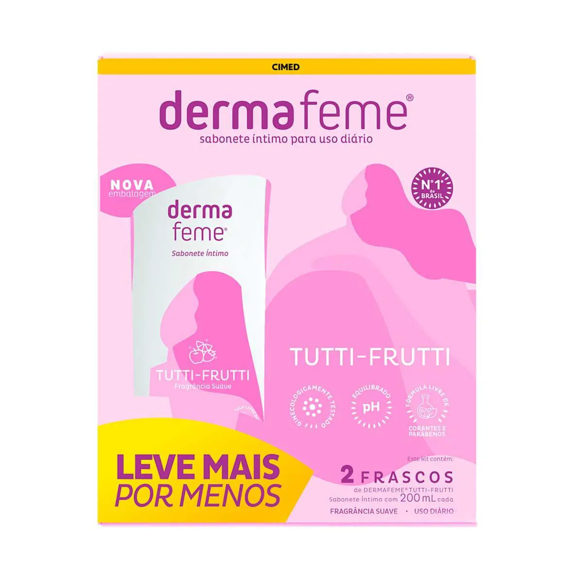 Dermafeme Tutti-Frutti é um sabonete líquido íntimo que proporciona limpeza e equilíbrio do pH da região íntima, além de proteção, conforto e bem-estar. Possui fragrância suave e pode ser usado diariamente. Pode ser usado a partir de 12 anos. livre de corantes e parabenos.