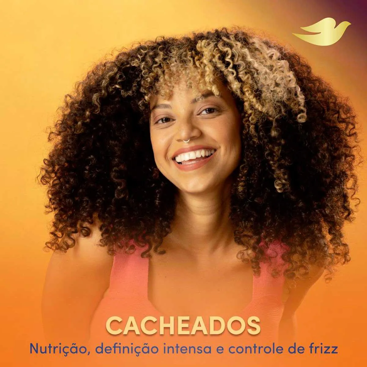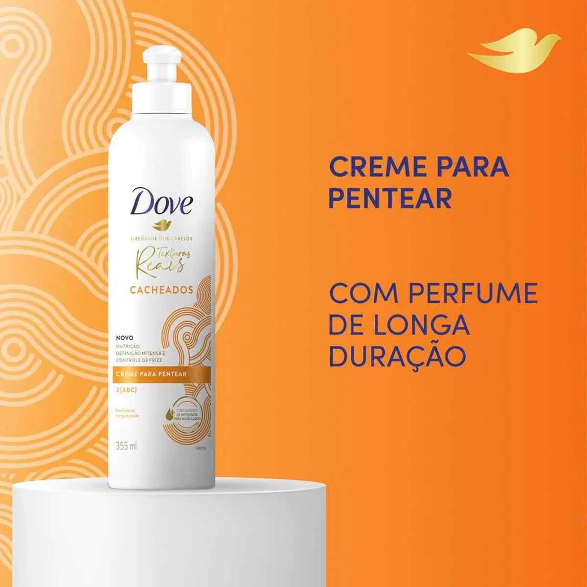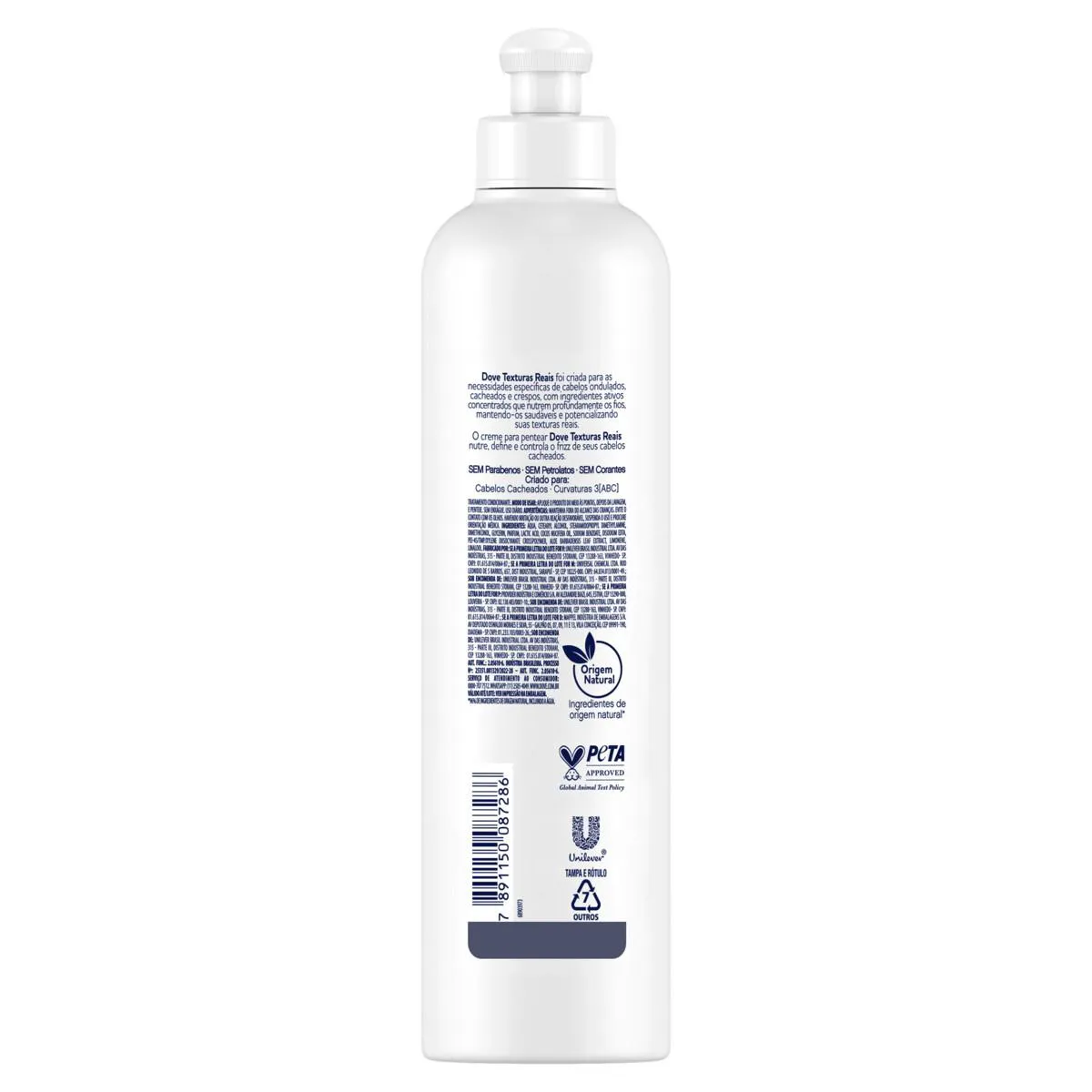 O Creme para Pentear Dove Texturas Reais Cacheados promove definição, nutrição e controle do frizz e deve ser usado para finalizar os cabelos cacheados (3 A/B/C).