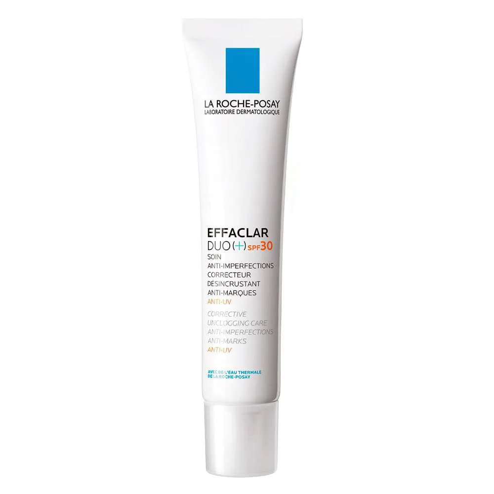 O cuidado anti-imperfeições Effaclar Duo (+) FPS30 de La Roche-Posay também age na pele como corretor desincrustante antimarcas, anti-uv e antipoluição.