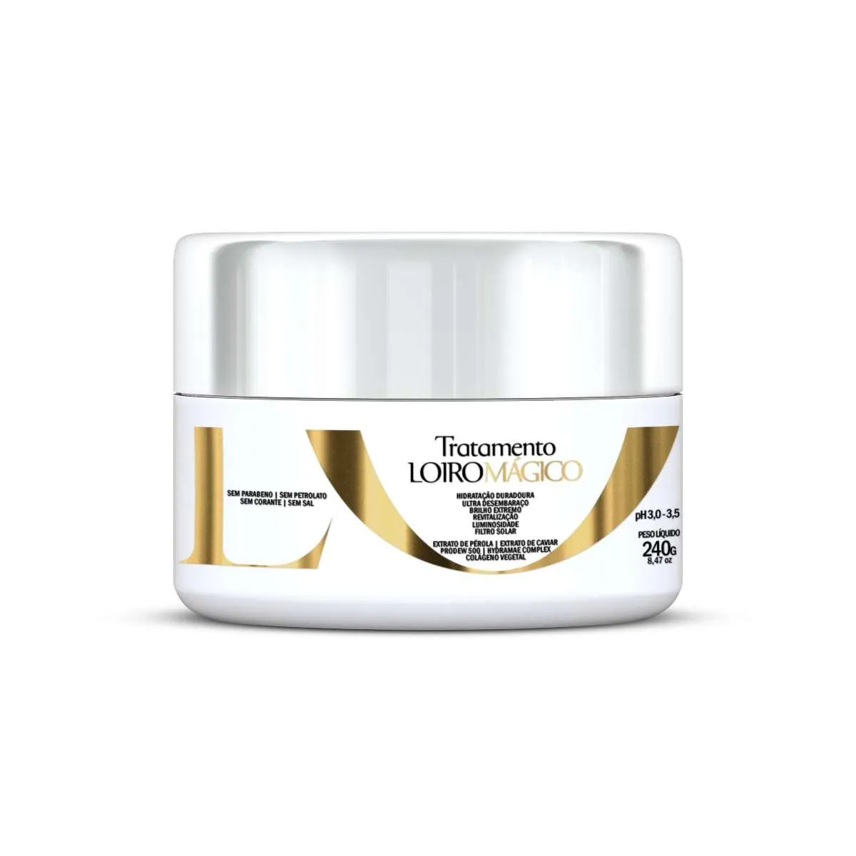 Com ativos de alta tecnologia, como Prodew 500, Hydramae Complex, Extrato de Pérola, Extrato de Caviar, Colágeno Vegetal, além de filtro solar, os fios manterão uma hidratação prolongada, ultra desembaraço, brilho extremo e uma proteção total que seus fios loiros necessitam.