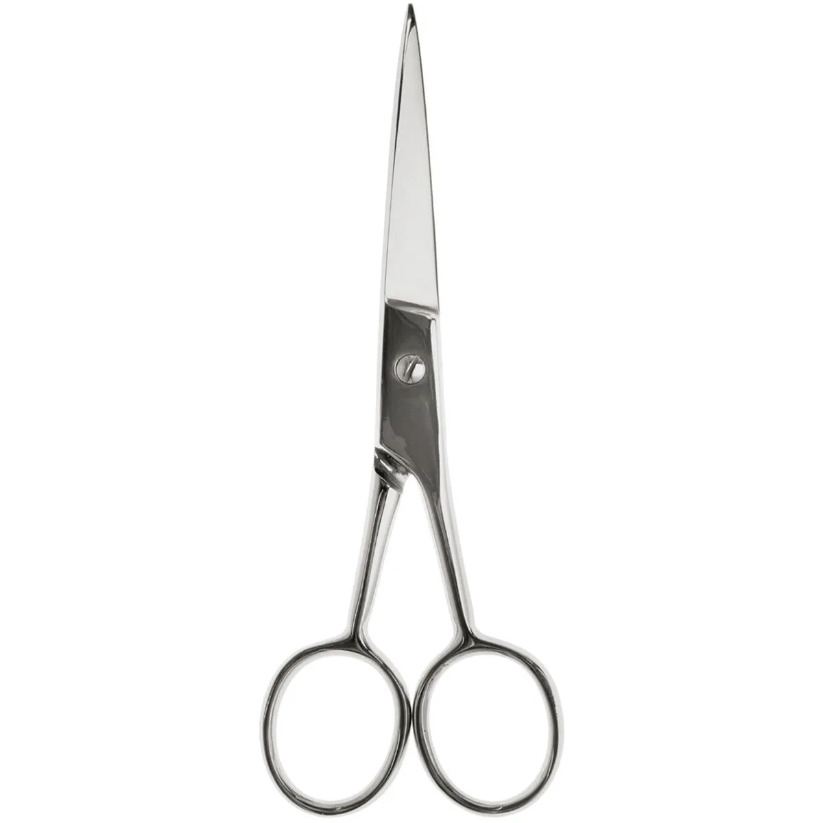 Tesoura para bigode em aço inox, no tamanho médio na cor prata. Possui lâminas tipo navalha para um corte mais preciso dos pelos do Rosto. Ideal para aparar os pelos do bigode e da barba.