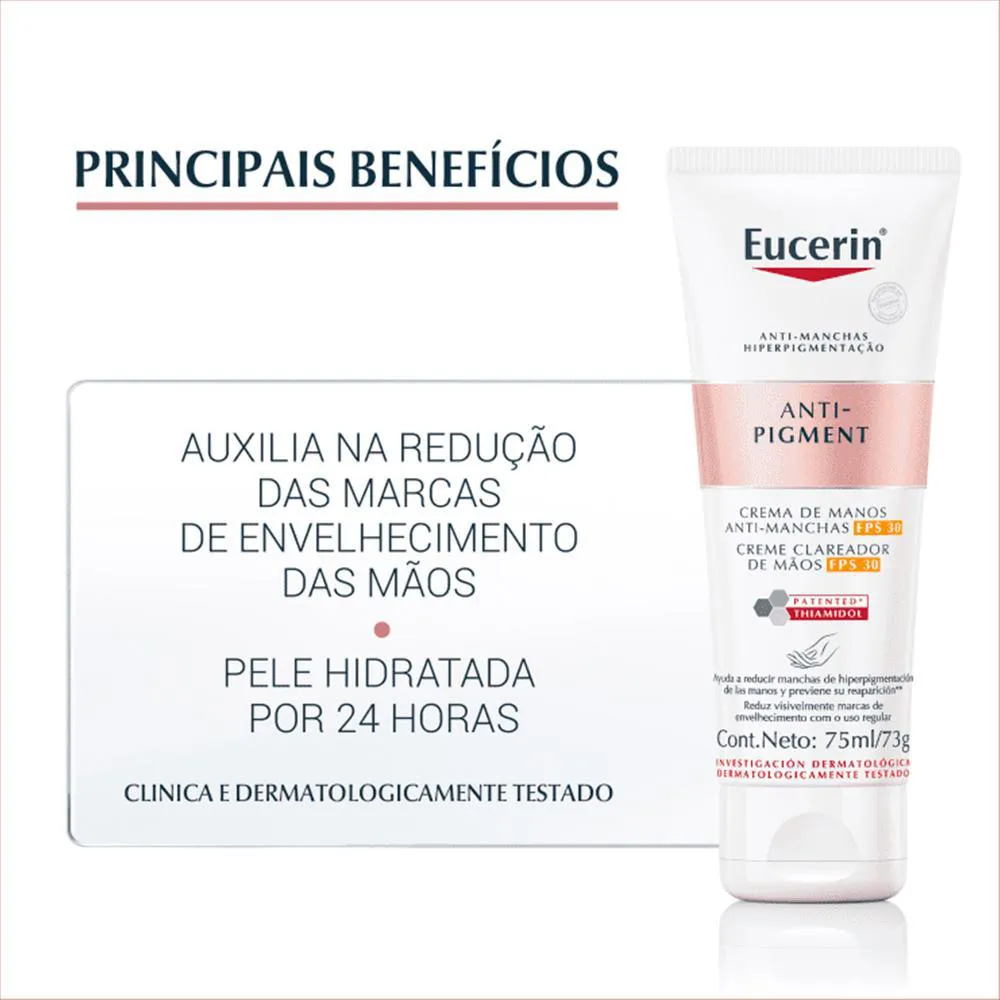 * OBSERVAÇÕES: Imagem Meramente Ilustrativa * ITENS INCLUSOS: 1 Eucerin Anti-Pigment Creme Clareador para as Mãos FPS 30 75 ml