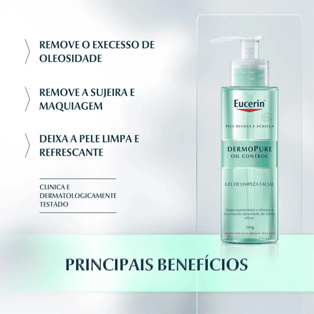 gel Facial de Limpeza Oil Control Eucerin Dermo Pureroduto Para a pele Oleosa com Tendência à Acne , Sua Formula Contém Ácido Salicílico e 6% de Tensoativosanfotéricos, Para Uma Limpeza Suave, Mas Eficaz Na Remoção do Excesso de Oleosidade. * Resultado: auxilia Na Remoção de Sujeiras e da Maquiagem, Para Uma Sensação de Limpeza e Frescor. * Sugestões de Uso: