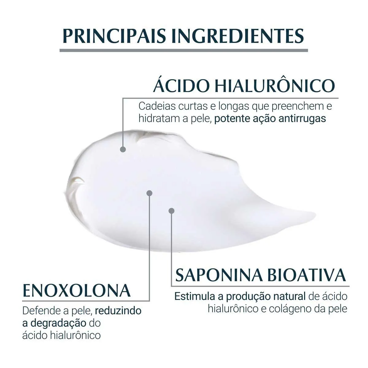 - Possui Ácido Hialurônico, com ação anti-idade e hidratante.